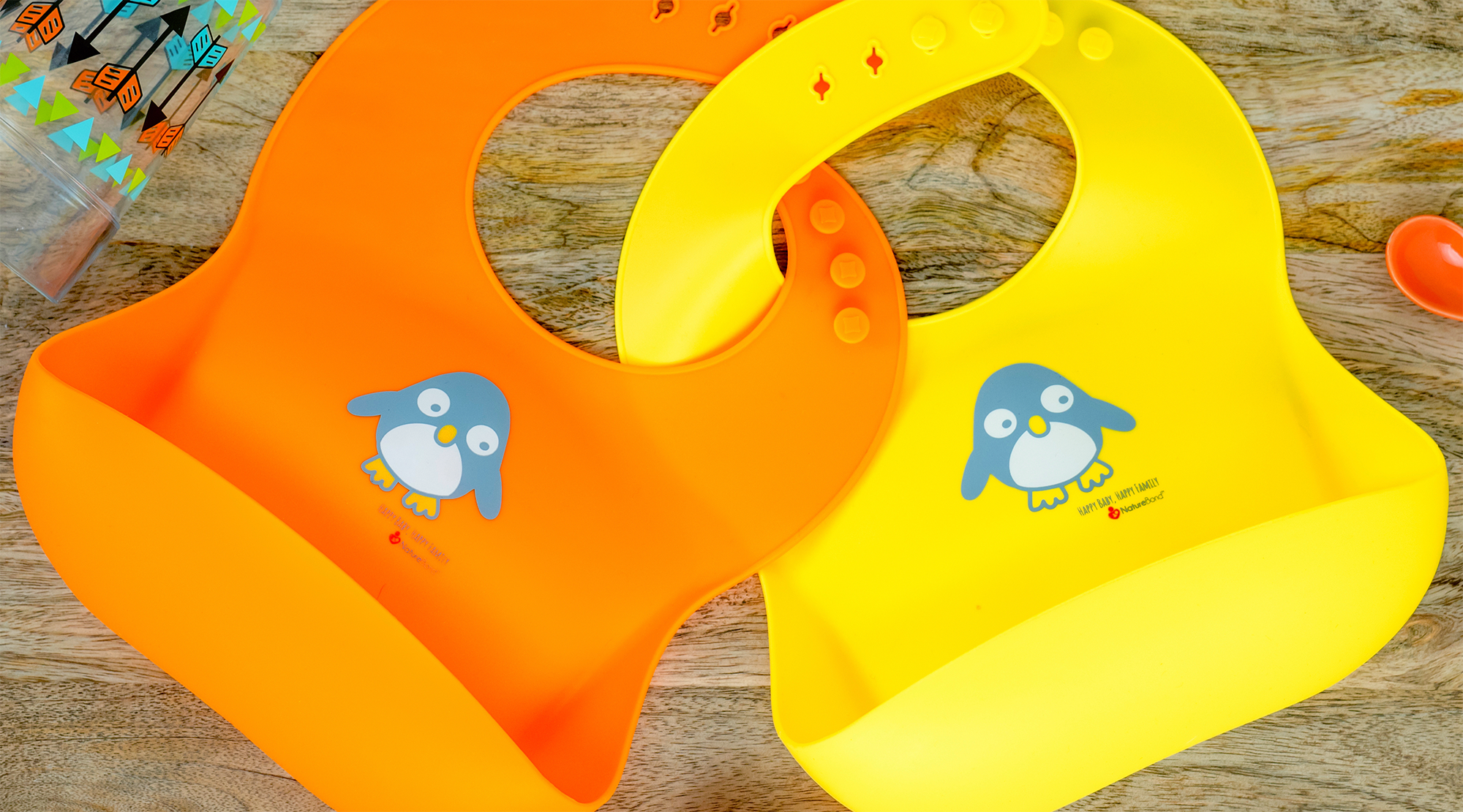 • ベイビーに安全–フードグレードシリコンでBPAフリー ネイチャーボンドシリコン涎掛けはPVCフリーで、生後4か月以上の赤ちゃんからご利用いただけます。